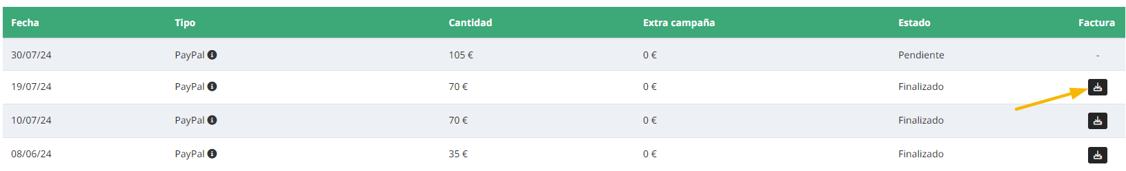 Si eres editor autónomo o empresa y nos has proporcionado la factura para el pago, también la tendrás disponible para descargar en el mismo lugar.